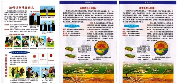 黨支部搜集整理噴繪的地震知識海報