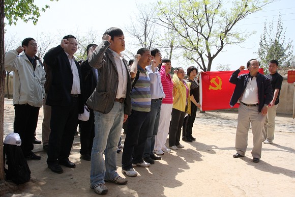 在中共七屆二中全會舊址前重溫入黨誓詞