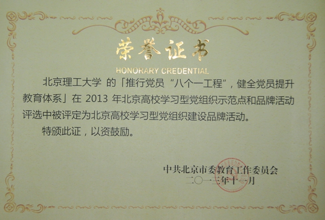 北理工在2013年北京高校學習型黨組織建設示范點和品牌活動評選中勇創佳績