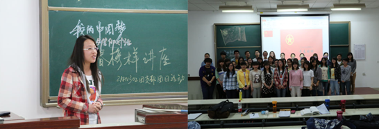2013級研六班團支部舉行了“我的中國夢•奮斗的青春最美麗”主題團日活動。活動主要分為三部分,在“談青春”環節同學們講述了自己的學習、成長、成才夢想,分享了自己對青春的不同見解,結合習近平總書記昨日在北京大學師生座談會上的講話,同學們更深刻的理解了社會主義核心價值觀,感受到了奮斗的青春最美麗。在“共進步”環節中,管理與經濟學院青春榜樣獲選人徐芳俐同學和大家分享了自己的創業經歷、工作感受、奮斗歷程等方面,與大家進行了熱烈的現場分享互動,鮮活的青春奮斗事跡引起了同學們的極大共鳴。在“樹理想”環節,同學們共同觀看了勵志片“新鷹的重生”。