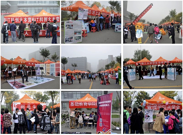 在招新現場,整齊有序的黃色帳篷、紅色醒目的組織名稱、新穎漂亮的招新展板,呈現出一幅百花齊放的景象。BIT科創大本營現場展示學生自主科技創新的最新獲獎成果,記者團開展攝像機、照相機等高精設備的現場教學活動,北理之聲廣播臺現場演示了錄音棚的功能和使用,校藝術團現場演奏手風琴、小提琴、架子鼓等樂器,校話劇團現場表演短劇,延河之星志愿者總隊通過大量的圖片和報道展示其特色志愿活動,校學生會在“小蘋果”的音樂聲中表演集體舞……,各具特色的宣傳方式吸引了無數同學前來咨詢報名。每個學生組織都積極為新生們介紹組織特色,解答疑惑。