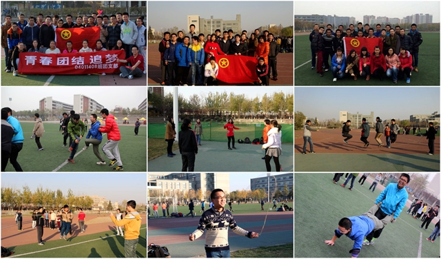 05111331團(tuán)支部、05111332支部在操場共同開展了“憶童年”主題活動(dòng),踢毽子、跳大繩、百米跑,兩個(gè)支部的同學(xué)在汗水中享受運(yùn)動(dòng)的快樂,在比賽中體驗(yàn)合作與競爭。04011305團(tuán)支部舉行了“生命不息,運(yùn)動(dòng)不止”主題團(tuán)日活動(dòng),跑步熱身、跳大繩、羽毛球?qū)梗缮璧绞炀殻瑥莫q豫到熱情,同學(xué)們在追逐中熱情高漲,你追我趕,用笑鬧聲歡呼聲溫暖了這個(gè)寒冷的冬日。05611302聯(lián)合05611301支部舉辦了激動(dòng)人心的友誼籃球賽,一次次成功的投籃、籃下?lián)寯酂o不體現(xiàn)出團(tuán)隊(duì)的默契配合,中場的女生投籃巾幗不讓須眉。