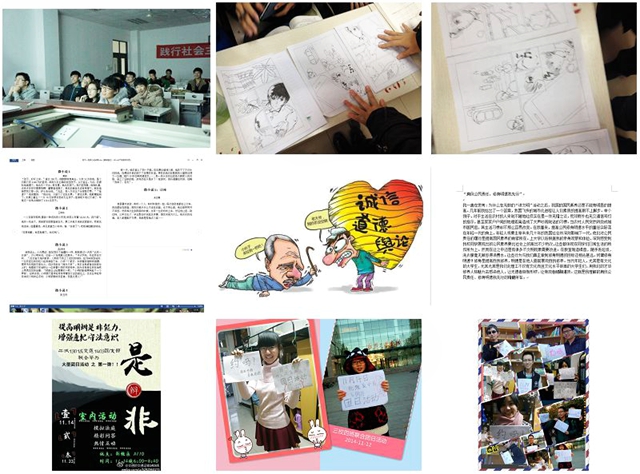 在以“肩負公民責任,修身明德我先行”為主題開展團日活動的支部中,團日活動以微小說、微漫畫、微電影等創作比賽的形式展開。新穎的活動形式調動起支部成員的積極性,涌現出一批優秀的主題創意作品,在創作中學習,在學習中創作,同學們在自己的探索中不斷了解到“愛國、敬業、誠信、友善”對于每個公民的重要意義。