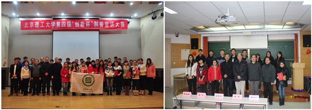 2015年1月11日,北京理工大學第四屆“創新杯”科普宣講大賽復賽順利結束。為弘揚科學精神、普及科學知識,進一步落實第三期“德學理工”計劃,此次復賽分為兩個賽區分別進行,中關村復賽于2014年12月28日在中關村校區七號樓報告廳舉辦,良鄉賽區復賽于2015年1月11日在良鄉校區理學樓B106舉辦。復賽評委由教育部中央教育科學研究所科技教育中心研究員汪耆年老師、北京市海淀區寄讀學校科技教師王飛老師、泰科維思科技發展有限公司張照立老師、宣武區科技老師李建雄老師、機電學院黨委副書記陳軍老師、研工部周瀟瀟老師、前科普宣講團副團長梁冠豪擔任。