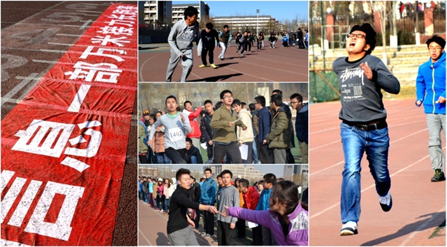如果說藍天下的舞動展現了莘莘學子昂揚向上的精神態度,那么萬米接力更是表達了他們不服輸的勁頭。由大一和大二共同組成的萬米接力隊伍,于12月1日,在南操場拉開奔跑的序幕。這一天雖然寒風刺骨,但是我們看到的不是一個個蜷縮的身影,而是一張張必勝的笑顏。一聲哨響,劃破天空。每一名隊員都如同離弦之箭一般飛奔出去。等待接應的隊員已經站好了位置,等待接力棒的到來。每個班級都在為自己的隊員吶喊助威,并拍照留念。每一個隊伍,每一名成員,每一次接力,都展現了當代大學生所必備的精神品質。萬米長跑,由25名同學共同完成,這更加體現出了同學們不服輸,團結友愛,共同奮斗優秀精神品質!