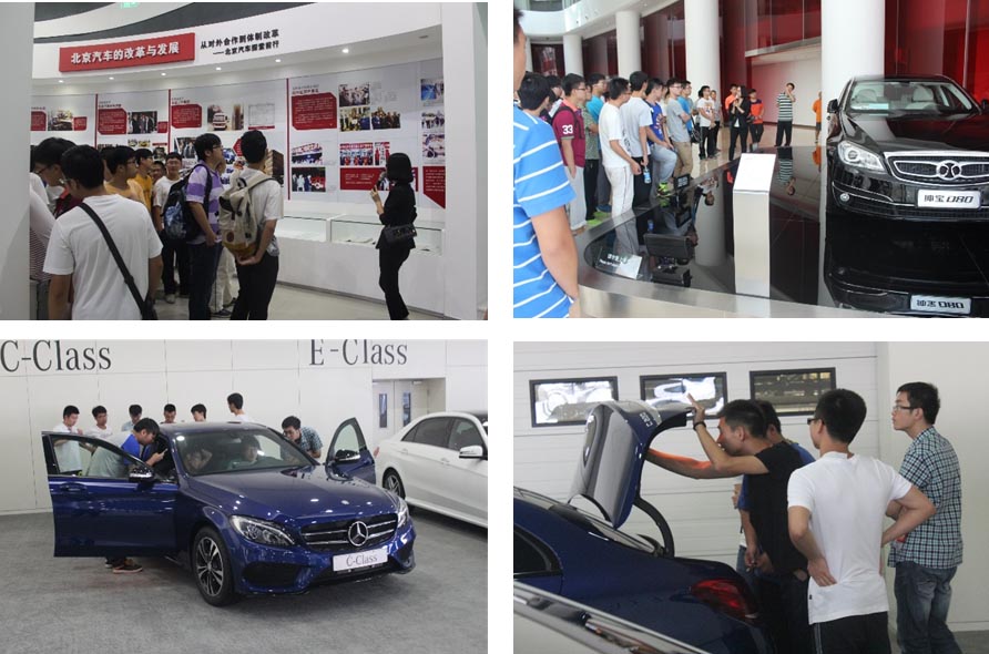 同學們在北京汽車研發基地全面了解了北京汽車的發展史,參觀了北京汽車自主研發的發動機和汽車。在北京奔馳汽車有限公司看到了奔馳汽車裝配過程的嚴謹和下線的華麗,并仔細“研究”著奔馳,體會著“The best or nothing”的內涵。