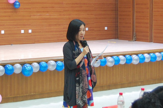 北京理工大學教務處副處長曹峰梅老師首先致詞。她引用我國成功申辦冬奧會為例,說明英語是架起中西文化交流的橋梁,只有自由和流利地語言表達和展示,才能傳達彼此的信任,增進國與國之間的共識和了解。在日益全球化和國際化的今天,英語已成為當代大學生必備的素質和要求,希望同學們認真學習英語,走向世界,走向未來。