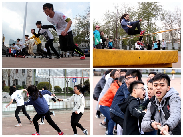 運動會共設計19個項目,包括100米、200米、400米、女子800米、男子1000米、跳高、跳遠、鉛球等。在各項比賽中,運動員們精神抖擻,奮力拼搏,熱情高漲,賽出了風格賽出了水平。百米跑道上他們飛速向前,永爭第一。跳高、跳遠比賽中,他們以靈活的動作彰顯了協調與優雅之美。鉛球比賽中,他們以矯健的身體展現了力量的剛猛。拔河友誼賽中,低年級同學更是盡顯出了奮勇拼搏,團結協作。另外,當天上午本科生在東籃球場舉行了趣味類項目的比賽,包括跳繩單搖和雙搖,毽子單腳踢和雙腳盤踢等。