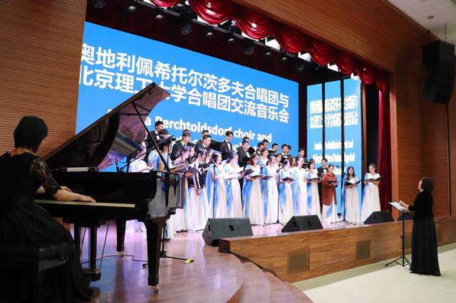 藝術(shù)周期間,我校承擔(dān)了接待日本北海道大學(xué)、奧地利佩希托爾茨多夫合唱團(tuán)的交流演出任務(wù)。10月18日,北理工學(xué)生合唱團(tuán)在北京市第三十五中學(xué)金帆音樂廳,與日本北海道大學(xué)男聲合唱團(tuán)、北京匯文中學(xué)合唱團(tuán)聯(lián)合舉辦了交流音樂會(huì)。10月19日,我校學(xué)生合唱團(tuán)與奧地利佩希托爾茨多夫合唱團(tuán)在我校良鄉(xiāng)校區(qū)音樂廳共同奉獻(xiàn)了精彩唯美的合唱音樂會(huì),同學(xué)們演繹了極富有民謠特色的“摘菜調(diào)”“半個(gè)月亮爬上來”等中國(guó)作品,同時(shí)演唱了奧地利著名音樂家海頓的音樂作品,豐富多元的演唱曲目與極具個(gè)性的演唱風(fēng)格贏得了國(guó)內(nèi)外師生的陣陣掌聲。北理工學(xué)生合唱團(tuán)以歌聲為媒,在“和平、友誼、青春”的氛圍里盡情歌唱,傳遞積極向上的精神力量。