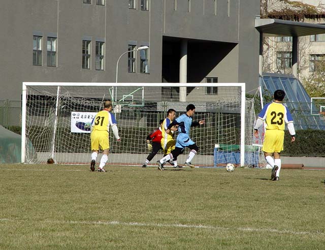 此前,我校教工足球隊在首屆高校教工“三洋投影機”杯足球邀請賽小組賽中,先后以6:1戰勝北京工業大學隊,以1:1與北京林業大學戰平,以5:1大勝北京大學教工足球隊,以4:0戰勝北京聯合大學隊。以積10份小組排名第一的身份進入四強。