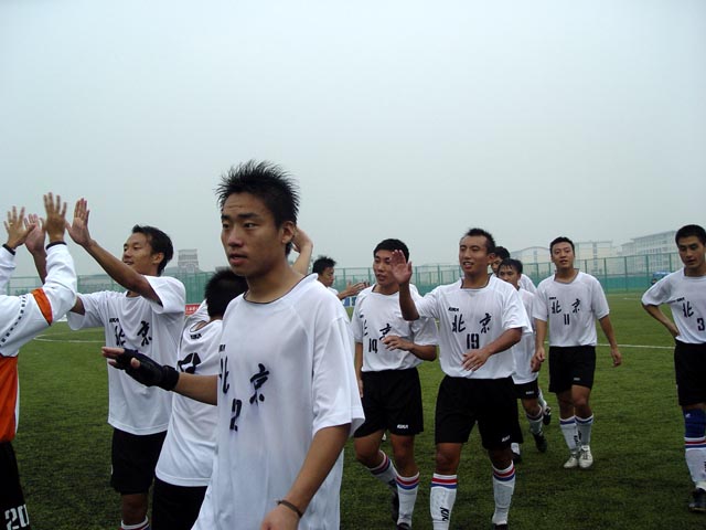 經過六天的激烈比賽依然充滿信心的我校足球隊今天在半決賽迎戰河北大學生足球隊。