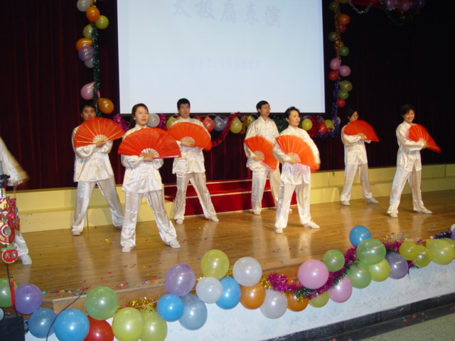 聯(lián)歡會上教師和學生表演了豐富多彩的文藝節(jié)目。首先在分黨委劉書記帶領下師生共同演唱的大合唱《保衛(wèi)黃河》和《同一首歌》,有高水平的教師孫遠翔和張慶明的男生獨唱,有學生表演的器樂合奏、小合唱、小品,有教師表演的太極功夫扇,有校工會楊靜老師的女生獨唱,還有退休老教師表演的24式太極拳。院領導和學生同做一個游戲,風趣、詼諧、把聯(lián)歡會推向高潮,節(jié)目各個精彩,都有獨到之處。