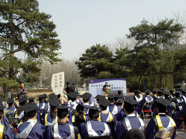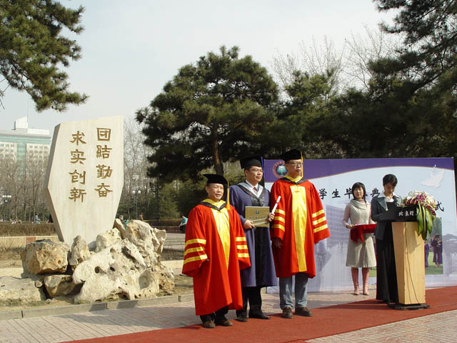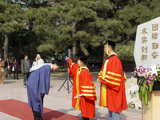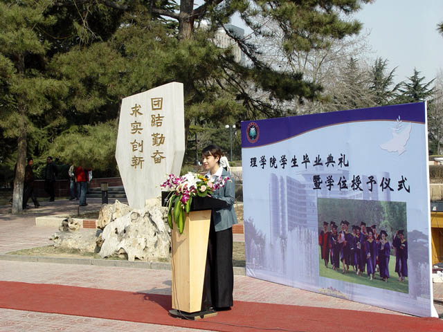 2005年3月20日,校園內(nèi)春風(fēng)拂面,百花初開。理學(xué)院2002級(jí)研究生畢業(yè)典禮暨學(xué)位授予儀式在雄壯的國歌聲中于中心花園校訓(xùn)前隆重召開。