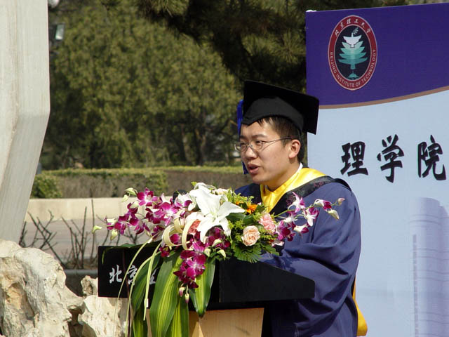 力學(xué)系學(xué)生代表董健代表理學(xué)院全體畢業(yè)生發(fā)言,表示今天是一個(gè)非同尋常、令人難以忘懷的重大節(jié)日,是大家人生道路上值得永遠(yuǎn)紀(jì)念的節(jié)日。今天不僅僅是參加一個(gè)畢業(yè)典禮,也是為了見證大家得來不易的成功與智慧,見證大家新的未來的開始。
