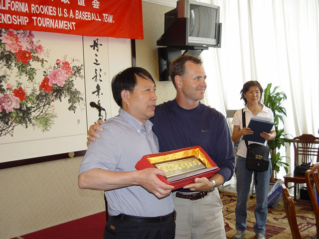 北京理工大學(xué)常務(wù)副校長李志祥親自參加了這次活動,發(fā)表了熱情洋溢的講話,并向美國加州新兵棒球隊贈送了禮物。