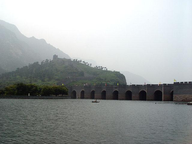 九門口長城,南距山海關15公里,東距綏中城62.5公里,其南端起于危峰絕壁間,與自山海關方向而來的長城相接。自此,長城沿山脊向北一直延伸到當地的九江河南岸,在寬達百米的九江河上,筑起規模巨大的過河城橋,以此繼續向北逶迤于群山之間。形成了“城在水上走,水在城下流”的奇絕景觀。九門口長城全長1704米,城橋長97.4米。兩側各有圍城一座,為露天方形城堡,高10余米,邊長8余米,底部設有磚石箭炮券洞7個,是萬里長城中獨一無二的防御體系,這段長城防御設備有敵樓、戰臺、哨樓、烽火臺等,建筑均為磚石結構。九門口長城始建于北齊(公元479—502年),明代以前,為重要的軍事關隘,史稱“京東首關”。此段長城擴建于明初洪武十四年,以徐達為代表的將軍率兵萬余人在山海關至水平嶺修關口三十二處,九門口當為其重要關口之一。