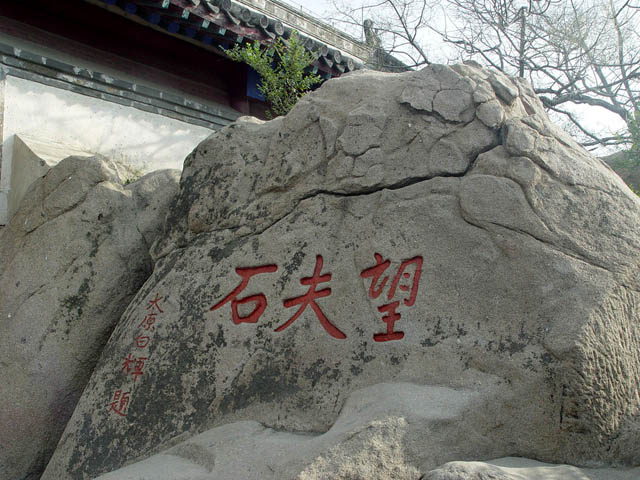 殿后有"望夫石",傳說為孟姜女登石望夫之處,石上有陰刻"望夫石"3字,為清代山海關通判白輝所題。石上有坑似足跡。石旁有乾隆皇帝題詩。"望夫石"后有多處刻留的小石臺和六角亭,名"梳妝臺"和"振衣亭"。傳說為孟姜女望夫前梳妝整衣的地方。
