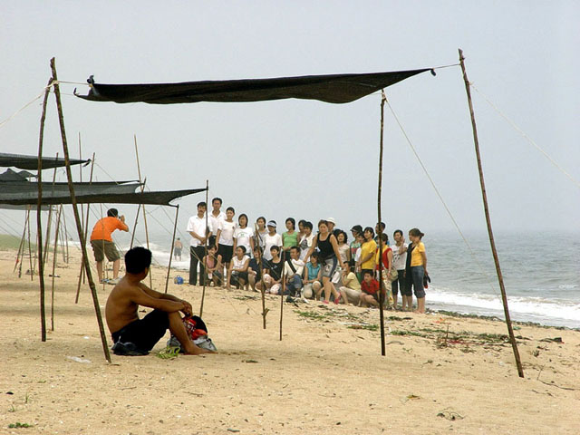 這里風光秀麗,氣候宜人。海水清澈見底,水淺波輕,海灘寬闊平緩,白沙細膩無泥,海中無礁石。海濱浴場的海底坡緩,距岸邊百米之外海水僅齊胸深。止錨灣東側的海域淺水區,海底坡度更緩,水拂腳面,極適于兒童游玩。