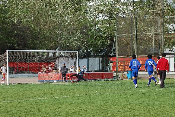 下半場第20分鐘,我方8號隊員突入禁區,對方守門員將8號隊員撲倒在地,我方獲得一次點球機會,將比分扳為1:1平。