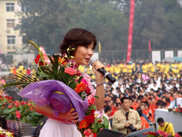 著名軍旅歌唱家劉彬帶來的鏗鏘有力的“當兵的人”,使在場的經歷過軍訓的廣大同學熱血沸騰。隨后,他還用優美的旋律演繹了國家副主席、我校校友曾慶紅同志祝賀校慶的詩詞。