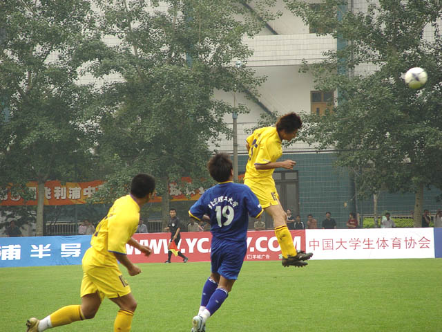 6月5日上午九點(diǎn),04-05飛利浦全國大學(xué)生足球聯(lián)賽總決賽的首場比賽在中國人民大學(xué)足球場拉開戰(zhàn)幕。本場比賽的交戰(zhàn)雙方是東道主中國人民大學(xué)和衛(wèi)冕冠軍北京理工大學(xué)。就兩隊(duì)實(shí)力對比來說,北京理工要強(qiáng)一些,但中國人民大學(xué)曾經(jīng)在去年的北京高校杯上兩勝北理,又占有主場之利,所以也并非沒有勝出的機(jī)會(huì)。但今天勝利的天平最終還是向北理傾斜了,經(jīng)過90分鐘的激烈爭奪,北京理工大學(xué)技高一籌,2:1小勝中國人民大學(xué)。