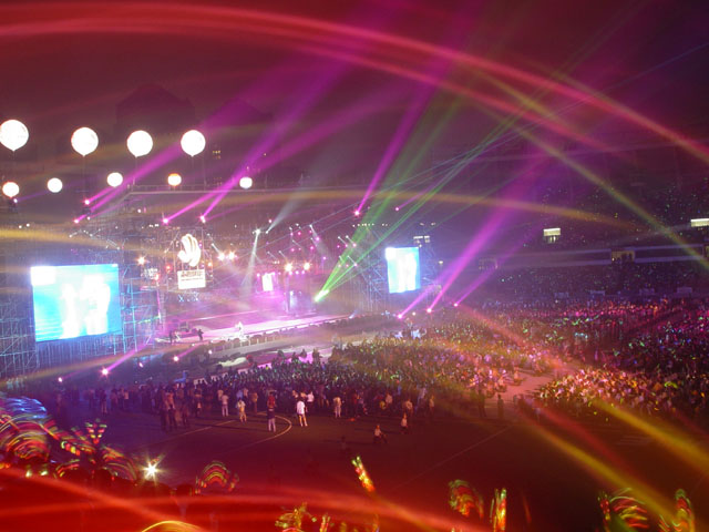 昨晚,志愿北京“7·13”大型演唱會在雨中如期舉行。工人體育場的數萬歌迷、眾多的志愿者和以志愿者身份出演的演藝明星們一起為北京2008年奧運點燃了一把熱情之火。