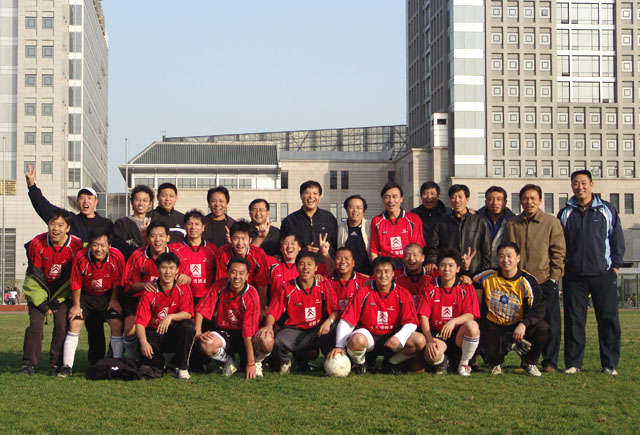 我校教工足球隊已經成立近10年,由來自各學院及機關、直屬、后勤等單位的教職工組成,隊員年齡從二十歲出頭到年近半百不等,其中既有博導、教授、院長,也有普通教職員工,他們是一個非常團結的集體,在以往的比賽中也取得了不俗的戰績。在去年的第一屆北京高校教工足球聯賽中,他們曾獲得第四名。在今年的聯賽中,他們在去年前三名全軍覆沒的情況下,敢于拼搏,率先進軍前四名,而今年聯賽的冠亞軍北京體育大學隊和大學生體育協會足球隊明顯有準專業隊員的背景,所以此次比賽,我校教工足球隊私下里被其他學校足球隊稱之為“無冕之王”。