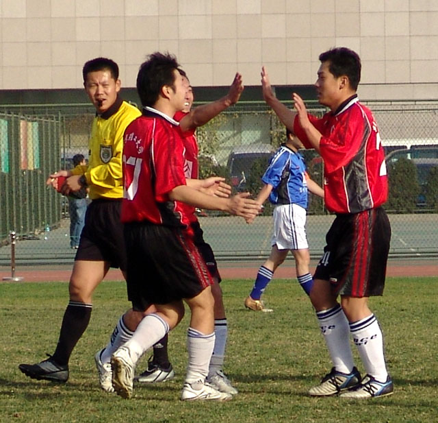 經過大家的奮力拼搏和密切配合,在第三節的比賽中,我校足球隊穩扎穩打,步步為營,終于在第10分鐘和第20分鐘各進一球,最終以2:1戰勝了清華大學足球隊!讓我們為北京理工大學教工足球隊喝彩和歡呼吧!祝愿他們在今后的比賽中再接再厲,再創佳績!