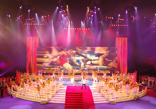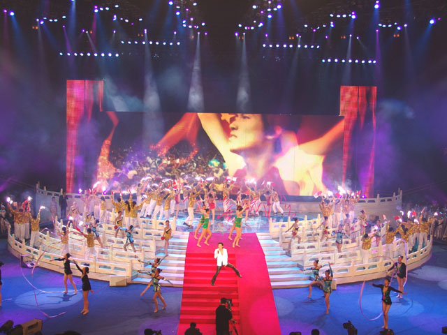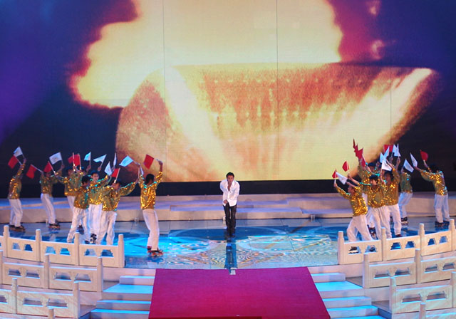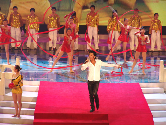 文藝演出的第四個節目是《為你榮光》,由香港著名歌星謝霆鋒演唱歌曲,我校同學擔任伴舞,其精彩的表演贏得了現場觀眾的陣陣歡呼。