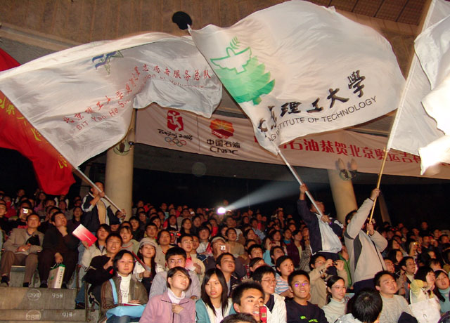 輪滑俱樂部的同學們經過了數天的彩排,終于在舞臺上為我校爭得了榮譽,也表達了大學生們對奧運的期盼之情。
