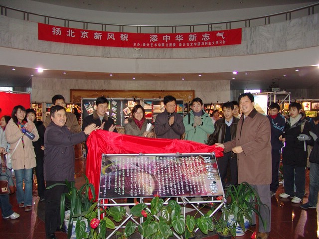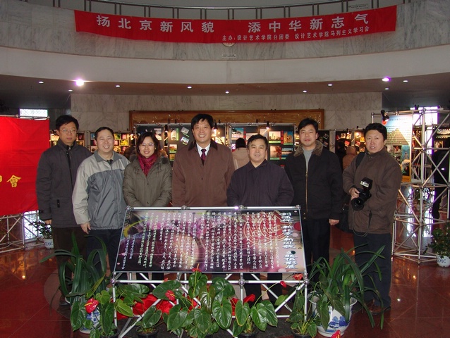 揭幕儀式之后,楊賓和侯光明等校領導仔細參觀和點評參展作品。