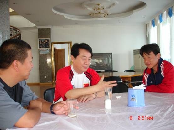 金志揚主教練與韓國大學生冠軍隊的教練員進行交流