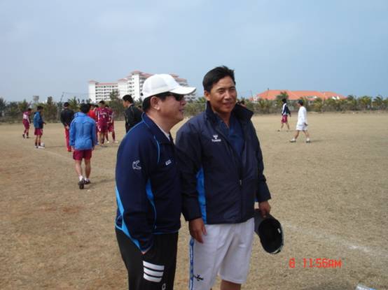 楊賓副書記一行還親切慰問了負責冬訓的金志揚教練、王力教練、李海河教練,感謝他們為我校足球建設所做的貢獻,金志揚主教練也就冬訓的整體情況向楊賓副校長進行了匯報。