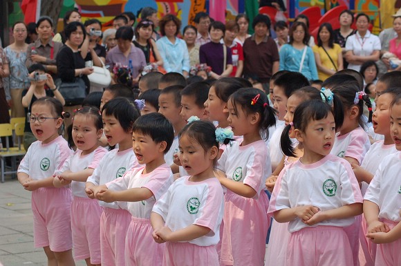 5月30日上午幼兒園迎來了孩子們盼望已久的“六一”慶祝大會。今日的晨曦分外迷人,燦爛的陽光穿過樹葉間的空隙,透過早霧,一縷縷地灑滿了幼兒園。孩子們在家長的陪伴下,快活地像一只只小鳥又唱又跳,飛進幼兒園這個充滿歡樂的綠色樂園。鮮艷的彩旗、漂亮的氣球和孩子們的美術、科技作品,把幼兒園裝點得更加富有生氣。