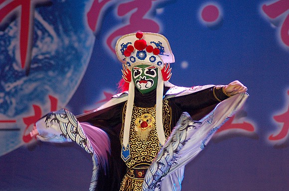 由北京河北梆子劇團張琦表演的川劇《變臉》變幻莫測。