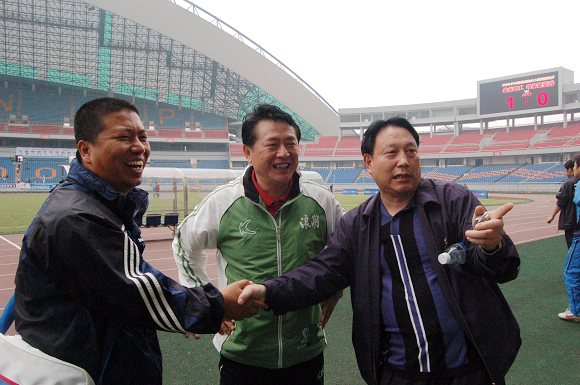 這時凌晨就開始坐飛機從北京風塵仆仆趕來觀戰的的我校常務副校長李志祥也剛剛走進賽場大門,他風趣地和金志揚總教練和王力教練開玩笑說:看來今天我來對了,我剛進賽場大門,皮球也進了對方大門,和我一起來了三個同志,看來今天估計要進三個球啊!