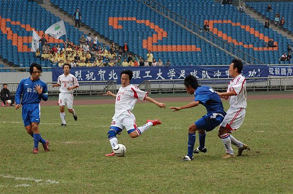由四川西物科技有限公司和重慶工學院共同組成的我校球迷助威團,今天又打著“熱烈祝賀北京理工大學足球隊沖甲成功!”的巨大橫幅來到了賽場,自從決賽階段的第一場比賽開始,他們就一如既往地大力支持和贊助北京理工大學足球隊,使得我校足球隊所有隊員都感到“賽場如主場,他鄉似故鄉”。