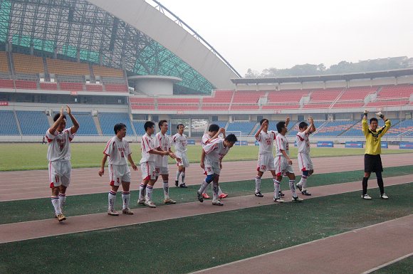 在比賽接近尾聲階段,我校足球隊又利用底線附近任意球的機會,由11號王強頭球破門,場上比分真的如李志祥常務副校長所預測,變為了3:0。