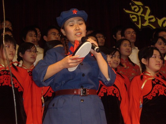 我院的參賽曲目是長征組歌的第一首《告別》以及一首精心挑選的經(jīng)典革命歌曲《紅軍鞋》,當晚,06級管理與經(jīng)濟學(xué)院新生以他們動情的演唱博得了在場觀眾一陣又一陣的掌聲,歡呼聲、掌聲連成一片,在中教報告廳回響,久久不能散去……在經(jīng)過了接連13個學(xué)院的精彩演唱后,在評委們一番嚴密的商討以及謹慎的評分后,我院以絕對優(yōu)勢取得了比賽的冠軍,在時隔一年之后,終于如愿重新回到了冠軍的領(lǐng)獎臺上。主持人一一宣讀了各個學(xué)院的所獲獎項,并由校領(lǐng)導(dǎo)、評為代表一一為獲獎單位頒發(fā)獎項,最后校領(lǐng)導(dǎo)與我院各級領(lǐng)導(dǎo)和參賽同學(xué)、學(xué)生干部合影留念……