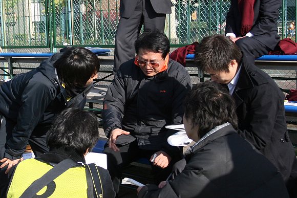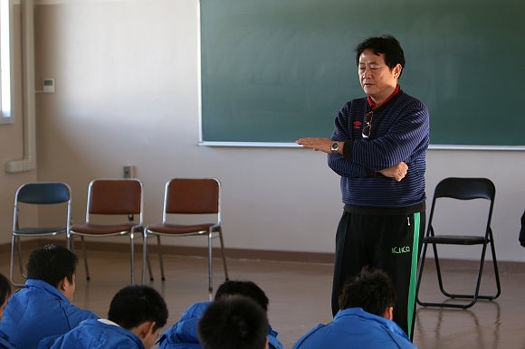 在爭(zhēng)奪第三名的比賽開始之前,我校足球隊(duì)總教練金志揚(yáng)教授總結(jié)了上一場(chǎng)比賽的得失,并就本場(chǎng)比賽的對(duì)手韓國(guó)漢陽(yáng)大學(xué)足球隊(duì)的特點(diǎn)進(jìn)行了認(rèn)真的分析,金志揚(yáng)教授主張球隊(duì)要想取得更好的成績(jī),想在明年的國(guó)內(nèi)甲級(jí)比賽中站穩(wěn)腳跟,必須進(jìn)行創(chuàng)新與改革。韓國(guó)漢陽(yáng)大學(xué)也好,朝鮮大學(xué)也好,其打法與特點(diǎn)都與日本駒澤大學(xué)相似,這次比賽大家要有充分的心理準(zhǔn)備,要以快治快,以拼治拼,看看自己的比賽節(jié)奏和拼搶技術(shù)能否與對(duì)方看齊,并爭(zhēng)取抓住場(chǎng)上的每一次機(jī)會(huì),力爭(zhēng)先發(fā)制人,盡量讓對(duì)方不適應(yīng)我們調(diào)整后的新節(jié)奏,當(dāng)然這種嘗試打法需要大家統(tǒng)一思想,在場(chǎng)上盡自己最大的努力去跑去拼去搶,不能有絲毫的猶豫,無論最后結(jié)果如何,只要大家盡力了,這樣我們就不僅能從對(duì)手身上學(xué)到足球發(fā)展新的理念,而且可以把它與自己的技戰(zhàn)術(shù)結(jié)合起來。