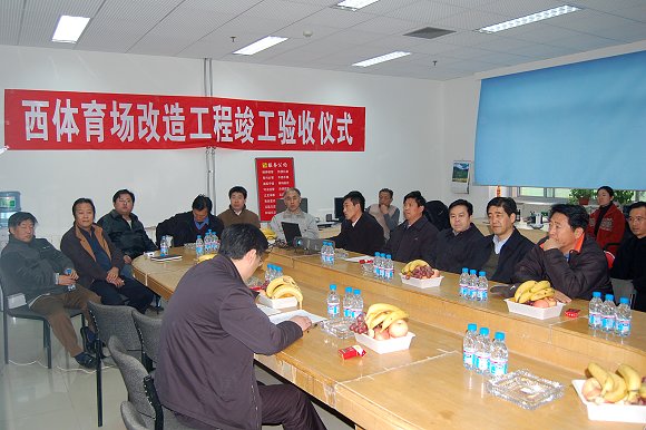 由后勤管理辦公室、體育部、財務處及總務后勤部有關負責人及專業人員組成的專家組分專業對西體育場、南北籃球場場地建設情況,包括場地面層、地下給排水、供電及相關土建等內容進行了逐項驗收。