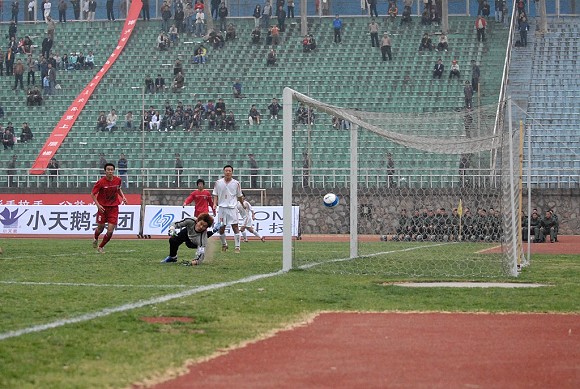 當(dāng)整個比賽進入補時階段時,北理工隊前場的逼搶造成有有隊后衛(wèi)停球失誤,北理工隊中場隊員得球后迅速將球分給左路,楊陽傳出一腳落點極佳的傳中球,換上場不久的楊思源頭球攻門,球入球門遠角,比分變?yōu)?-0。