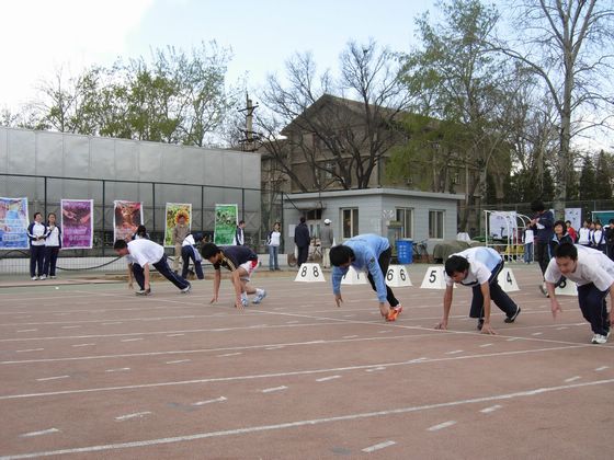 在緊張激烈的運動賽中,同學們本著“友誼第一,比賽第二”的原則,發揚著不怕苦,不怕累的精神,向著“更快、更高、更強”的目標努力著。