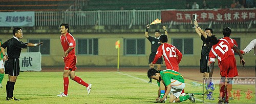 下半場第15分鐘,北理工在頂風作戰的情況下組織了一次快速反擊,經過幾次絕妙的配合之后,由姚遠在禁區內的一腳勁射率先打破了南昌八一的大門。也許八一衡源的守門員也沒想到,率先破門的會是曾經以4:1戰勝過的北理工。