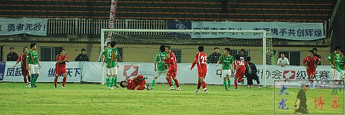 可惜的是皮球并未撲遠,八一隊再次傳中,利馬門前頭槌攻門,皮球再次以弧線越過剛剛回位立足未穩的孫程頭頂將球打入,2比1!八一隊把比分反超。