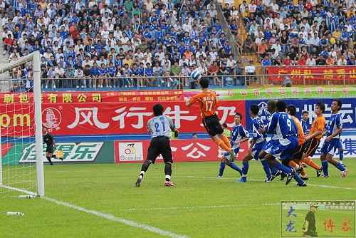 第71分鐘,李志海右側(cè)45度傳中,杰弗森力壓對(duì)方后衛(wèi)側(cè)身右腳掃射打進(jìn)左上角破網(wǎng),廣州醫(yī)藥隊(duì)3-2反超。第77分鐘,楊鵬鋒右側(cè)開(kāi)出角球,對(duì)方后衛(wèi)解圍不遠(yuǎn),高明外圍左腳抽射偏出。