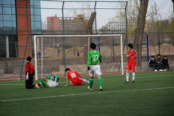 果然,下半場開始后不久,北理工隊的李東昊又一次通過禁區(qū)前的勁射將比分擴大為3:0,人大隊甚至因此更換了守門員。