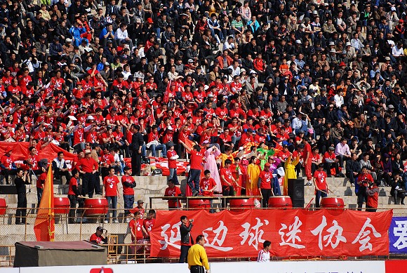 因為首輪輪空,延邊隊的聯賽首次亮相被推遲到今天,現場涌入近三萬名球迷。