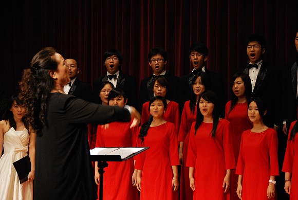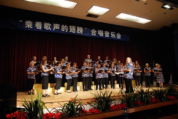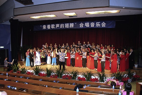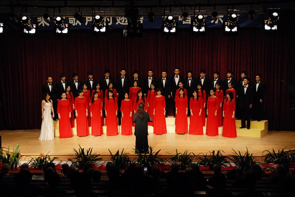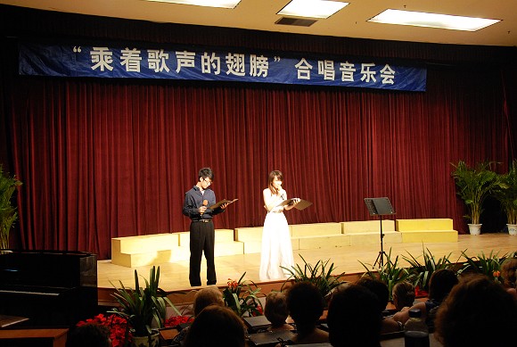 這是由來自美國南加州大師合唱團、我校學生合唱團、中國音樂學院青年歌唱家合唱團共同完成的一場合唱音樂會,我校師生在優美的歌聲中度過了一個美好而溫馨的夜晚。