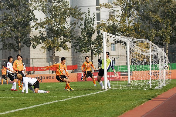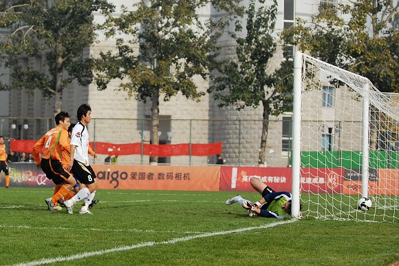 第35分鐘,北京愛國者左路發起進攻,長傳球直奔后點,韓松峰盯人不緊,盧斌接隊友頭球后蹭,用腳機敏將球碰進網窩,比分變成2-0。